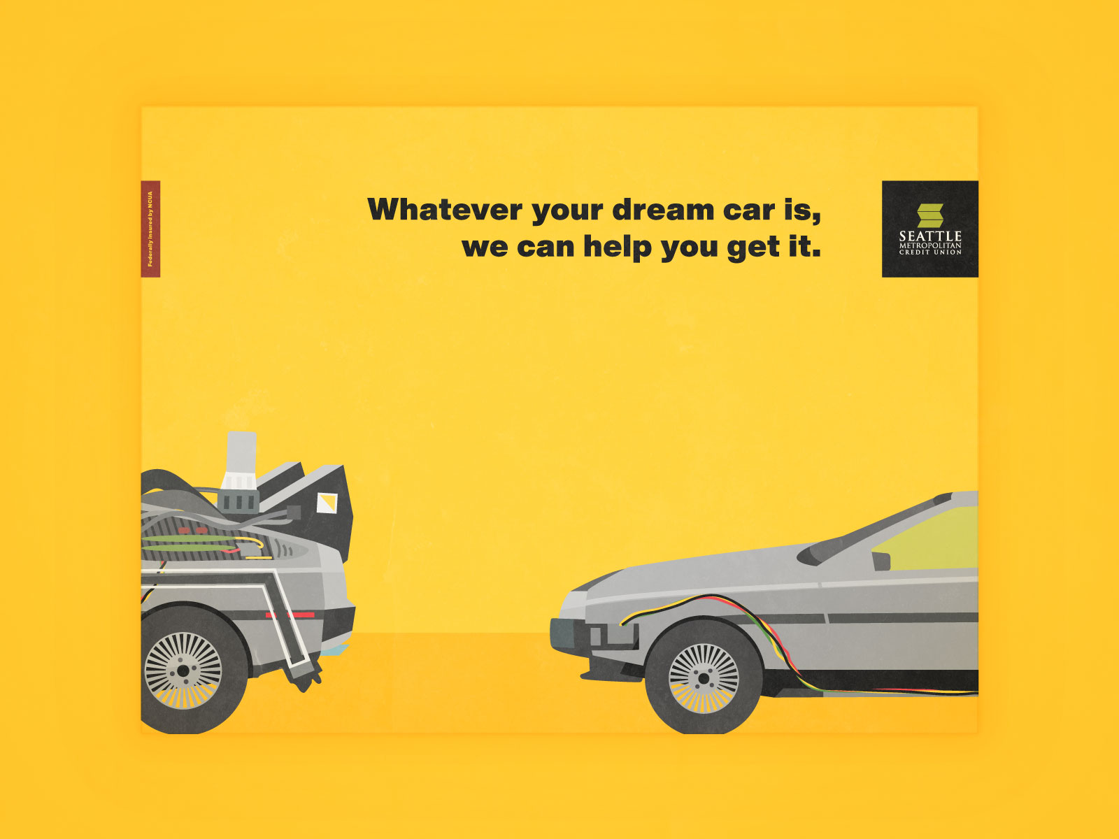 I created direct mail pieces, retail signage, digital banners, social media advertisements, and a set of motion graphics for use on the SMCU website and at branches with retail monitors. Not only did we exceed the auto loan production goal by over 65%, but members also commented on the artwork and asked to take the retail signage home when the promotion ended.
